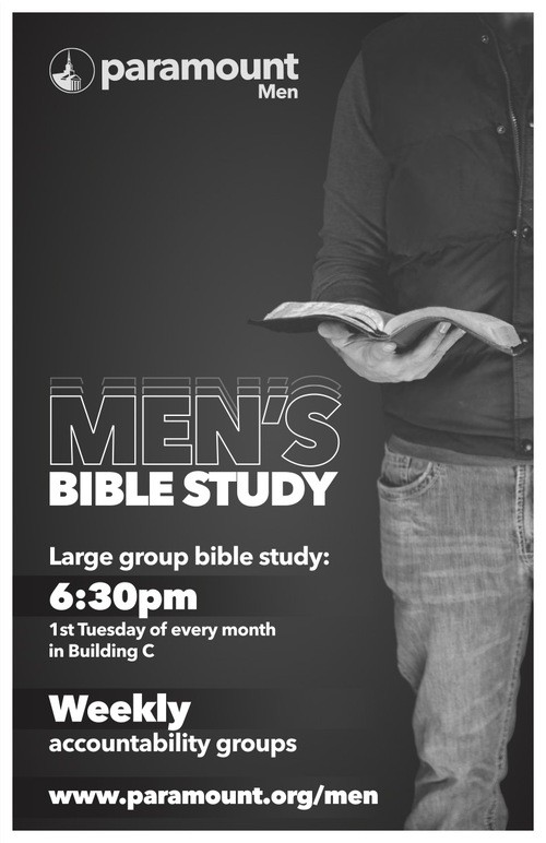 On the first Tuesday of each month (September-May), Paramount men gather for Bible study. Following a large group time, men break into small groups for further Bible study, spiritual conversations and accountability.